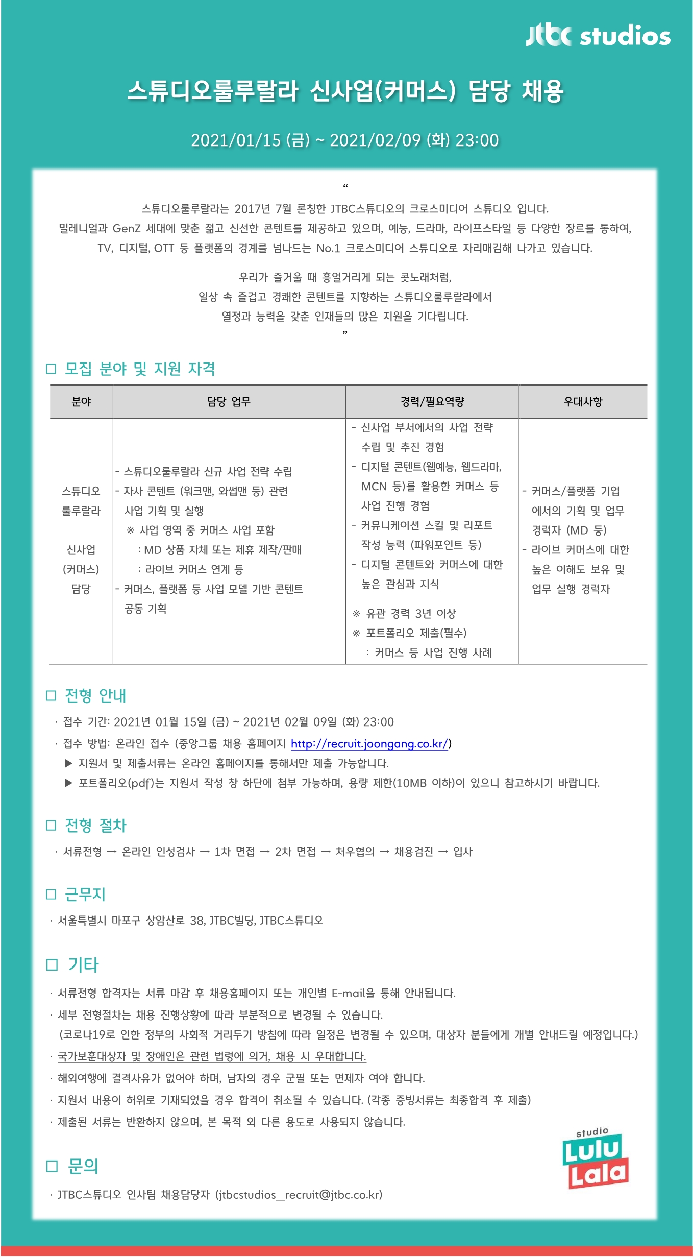 스튜디오룰루랄라 신사업(커머스) 담당 경력채용