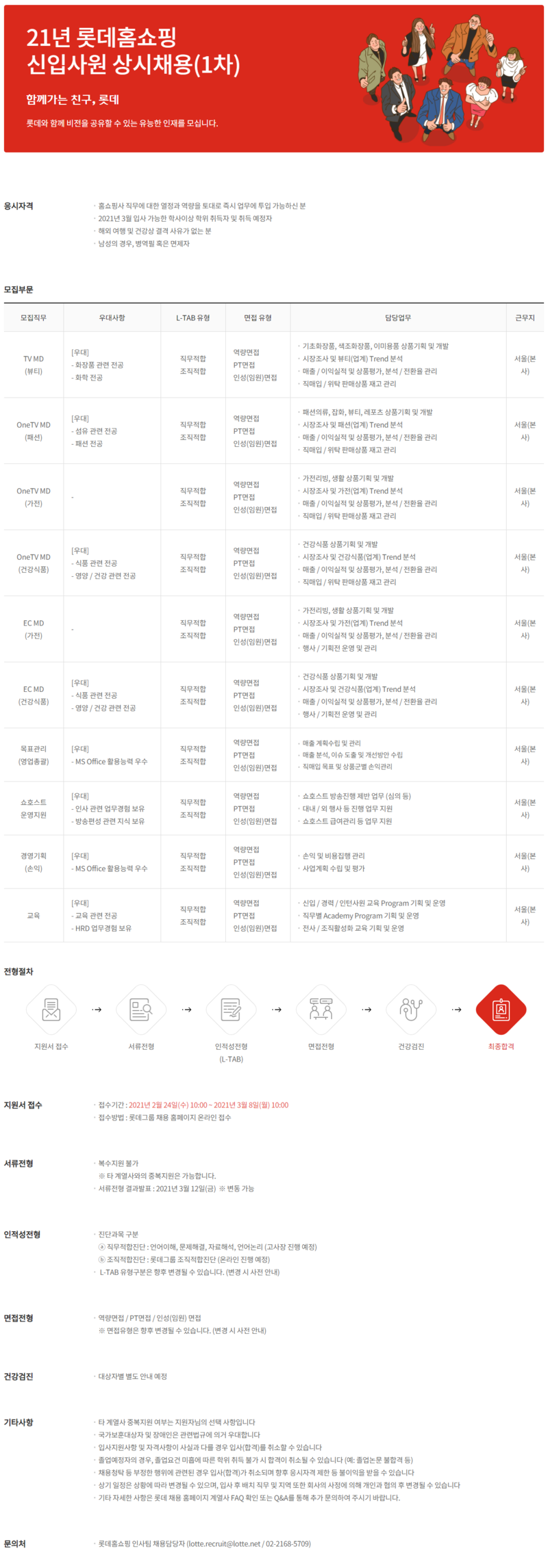 - TV MD(뷰티) / OneTV MD(패션) / OneTV MD(가전) / OneTV MD(건강식품) / EC MD(가전) / EC MD (건강식품) / 목표관리(영업총괄) / 쇼호스트 운영지원 / 경영기획 (손익) / 교육