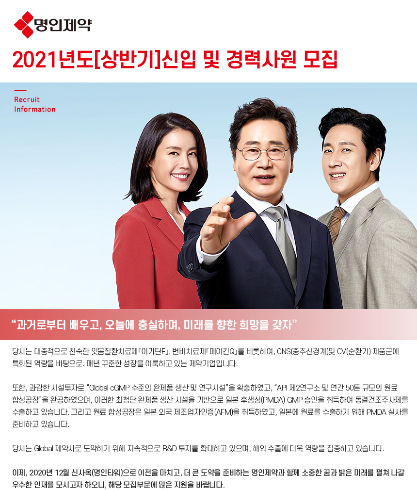 1985년 설립된 명인제약은 CNS(중추 신경계) 전문 의약품 제조 업체로 출발한 대한민국의 의약품 제조회사입니다.