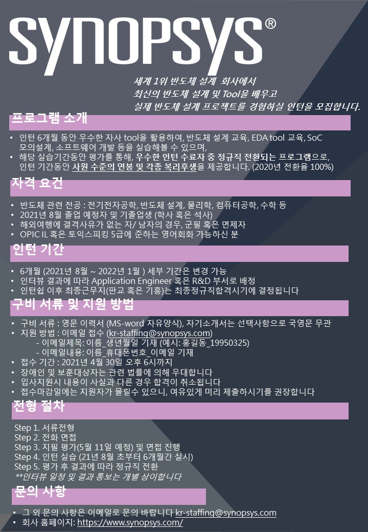 * 마감일은 기업의 사정으로 인해 조기 마감 또는 변경될 수 있습니다