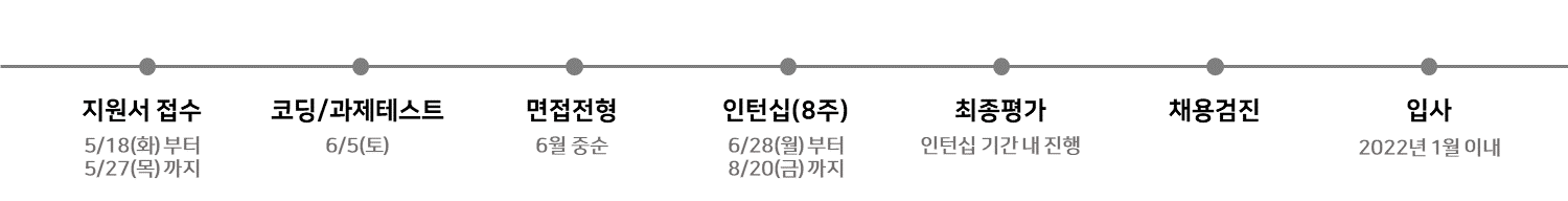 인턴십 종료 후 최종평가를 진행하며, 최종평가 합격 대상자는 2022년 1월 이내 정규입사를 원칙으로 합니다.