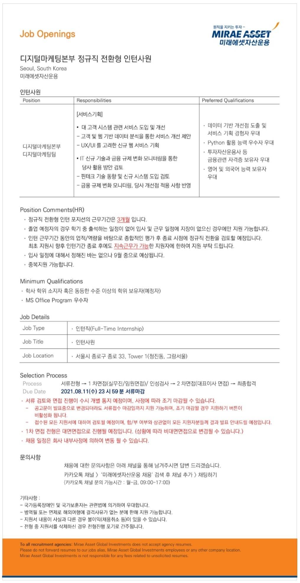 디지털마케팅본부 정규직 전환형 인턴사원 채용