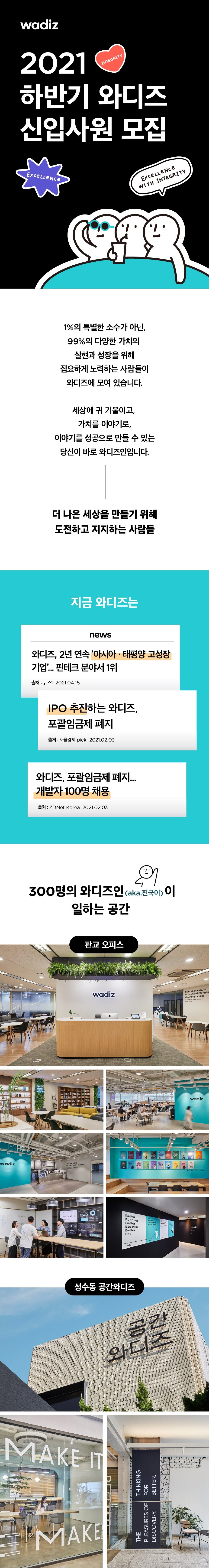 와디즈가 하는 일에, 와디즈의 문화에, 와디즈인들의 이야기에 가슴이 뛴다면 지금 합류하세요!
