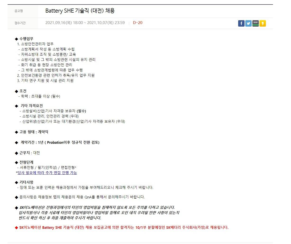 2021 Battery SHE 기술직 (대전) 채용
