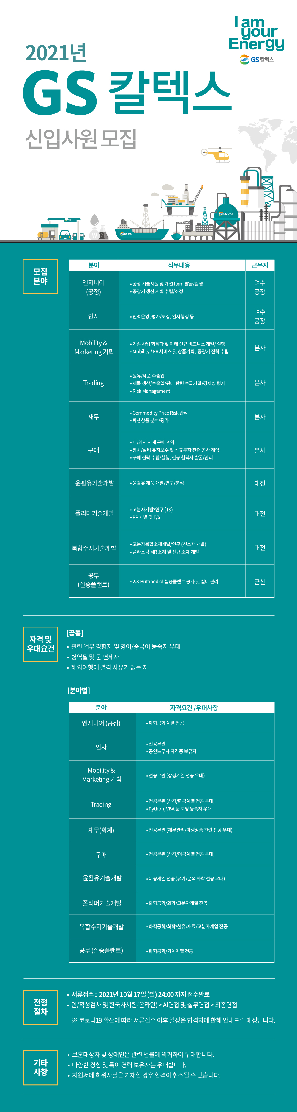 정유, 석유화학, 윤활유 등 기존 사업의 지속적인 성장을 넘어 앞선 기술과 차별화 된 품질로 전 세계 20여 개국에 석유 및 석유제품을 수출하고 있는 GS칼텍스는, 글로벌 에너지 시장을 선도하기 위해 끊임없이 도전하는 국내 최고의 에너지 전문 기업입니다.