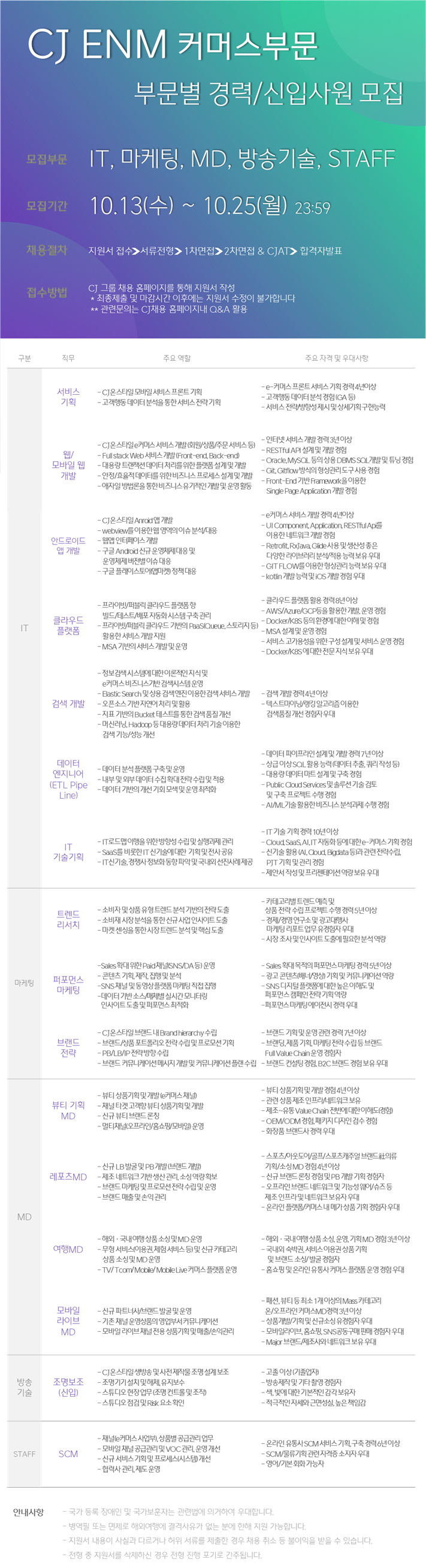 -뷰티 기획MD, 레포츠MD, 여행MD, 모바일라이브MD