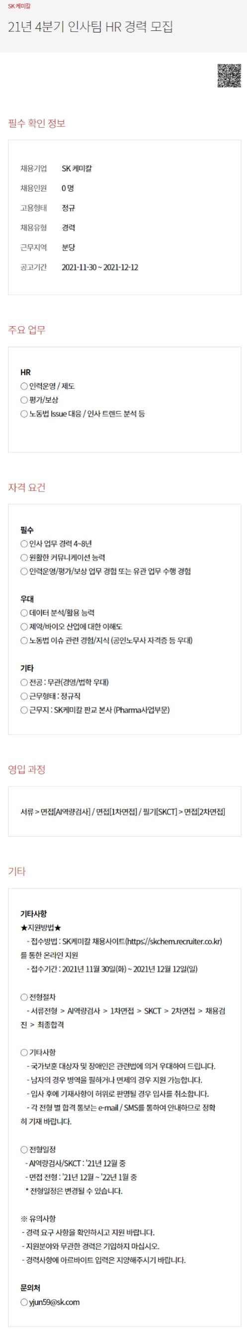 ○ 근무지 : SK케미칼 판교 본사 (Pharma사업부문)