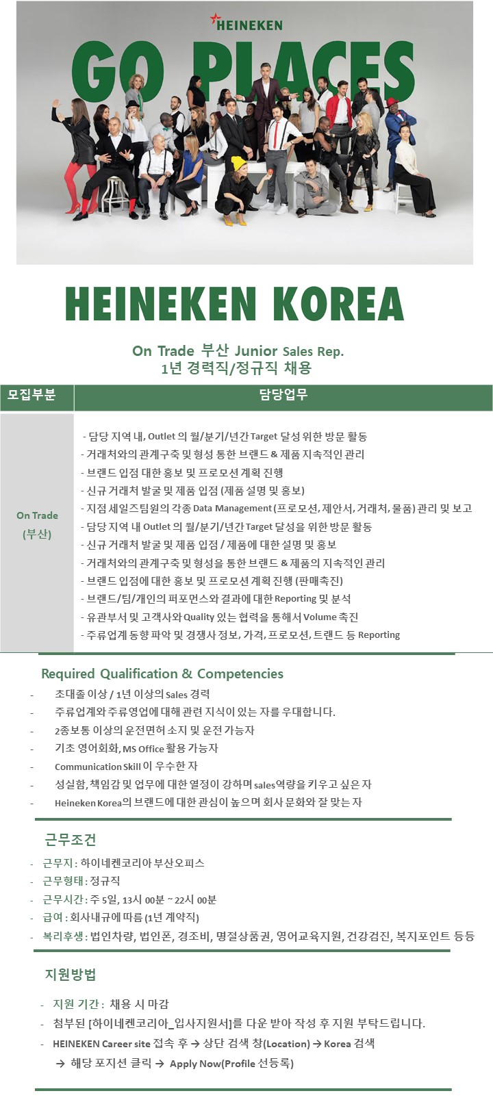 ※ 하이네켄 커리어 사이트에서 지원하시는 포지션명/지역명을 반드시 확인하시기 바랍니다.