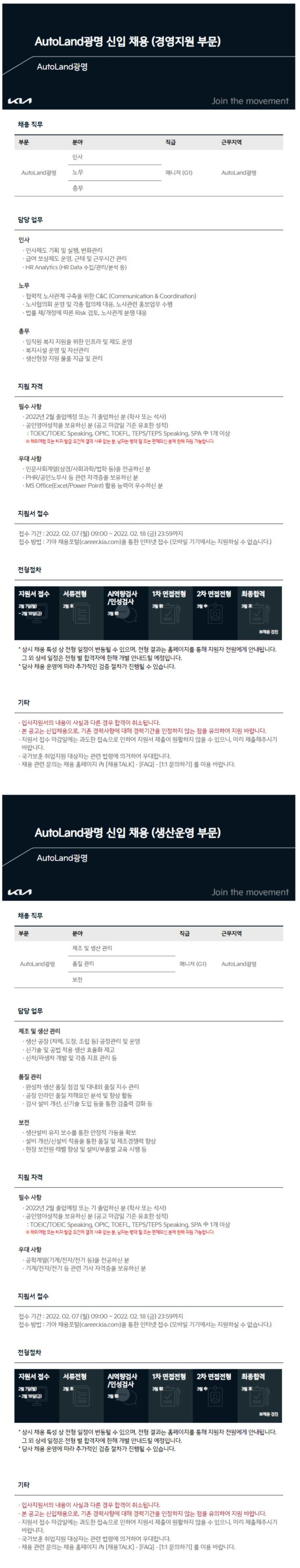 AutoLand광명 경영지원/생산운영 부문 신입 채용