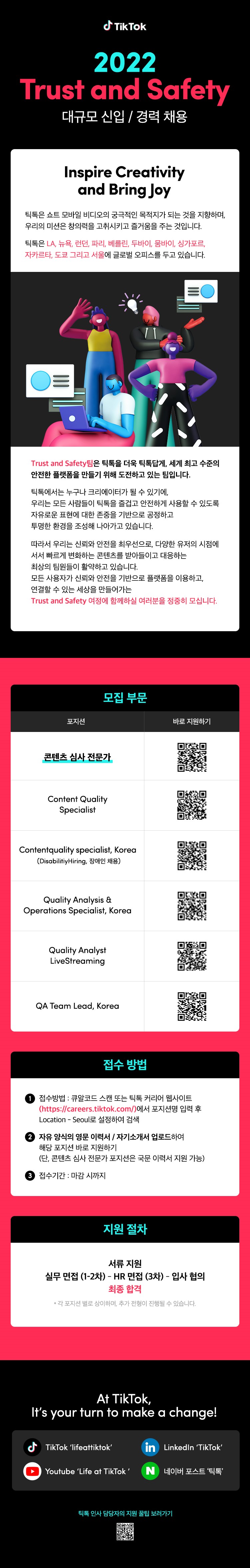 2022 틱톡(TikTok) Trust & Safety 신입/경력 대규모 채용