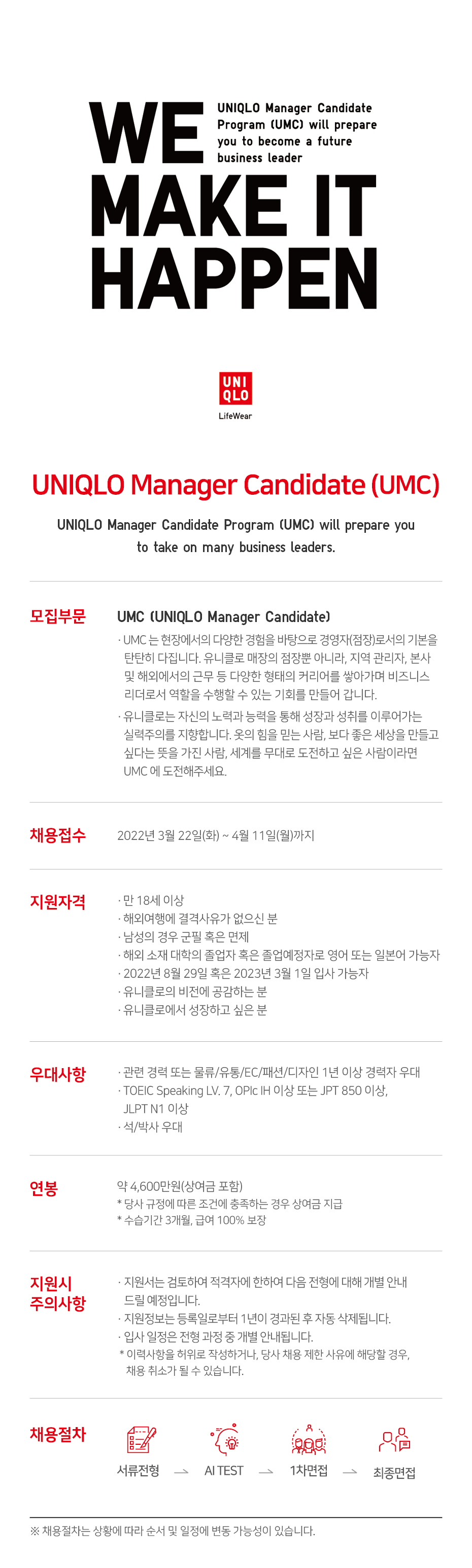 유니클로 신입사원 공개채용_유학생전형 UMC (UNIQLO Manager Candidate)