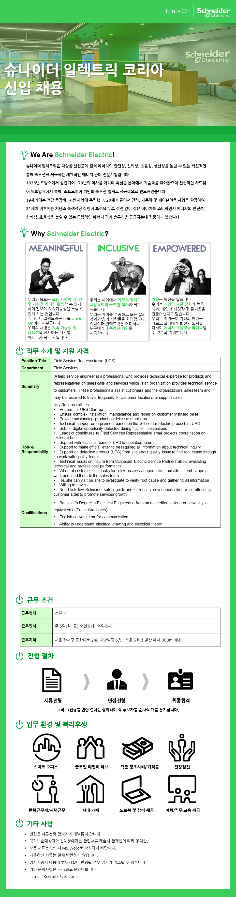 [슈나이더일렉트릭/외국계] 필드엔지니어