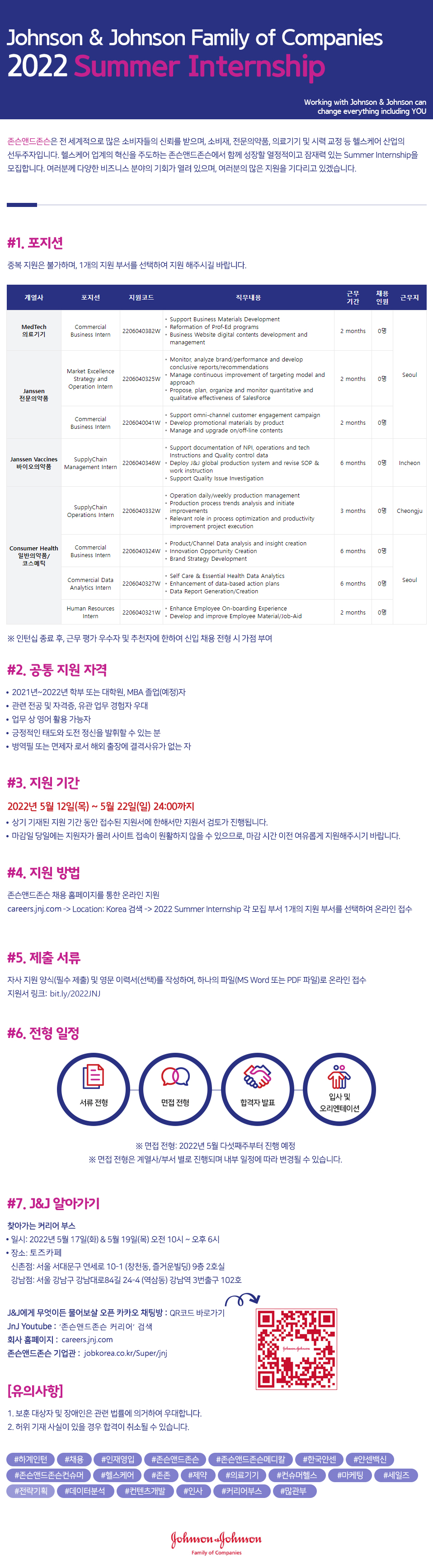 존슨앤드존슨의 모든 임직원들은 한번에 한 사람씩, 전세계 인류를 보살피는 일을 한다는 사명감을 갖고 있습니다. 존슨앤드존슨은 연구와 과학에 대한 기회를 개발함으로써, 인류의 건강과 삶의 질을 향상시킬 수 있는 혁신적인 아이디어, 제품 및 서비스를 제공합니다.