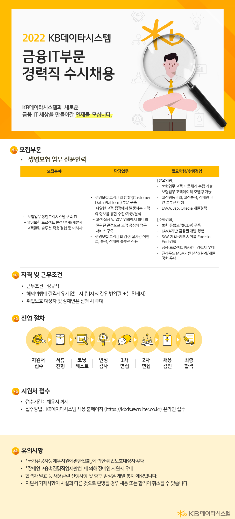 생명보험 업무 전문인력 (차세대 프로젝트 SI) 경력 채용