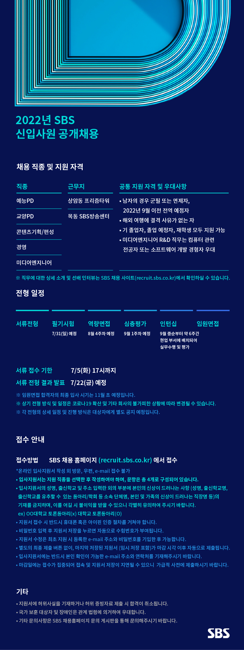 - 미디어 엔지니어 R&D 직무는 컴퓨터 관련 전공자 또는 소프트웨어 개발 경험자 우대