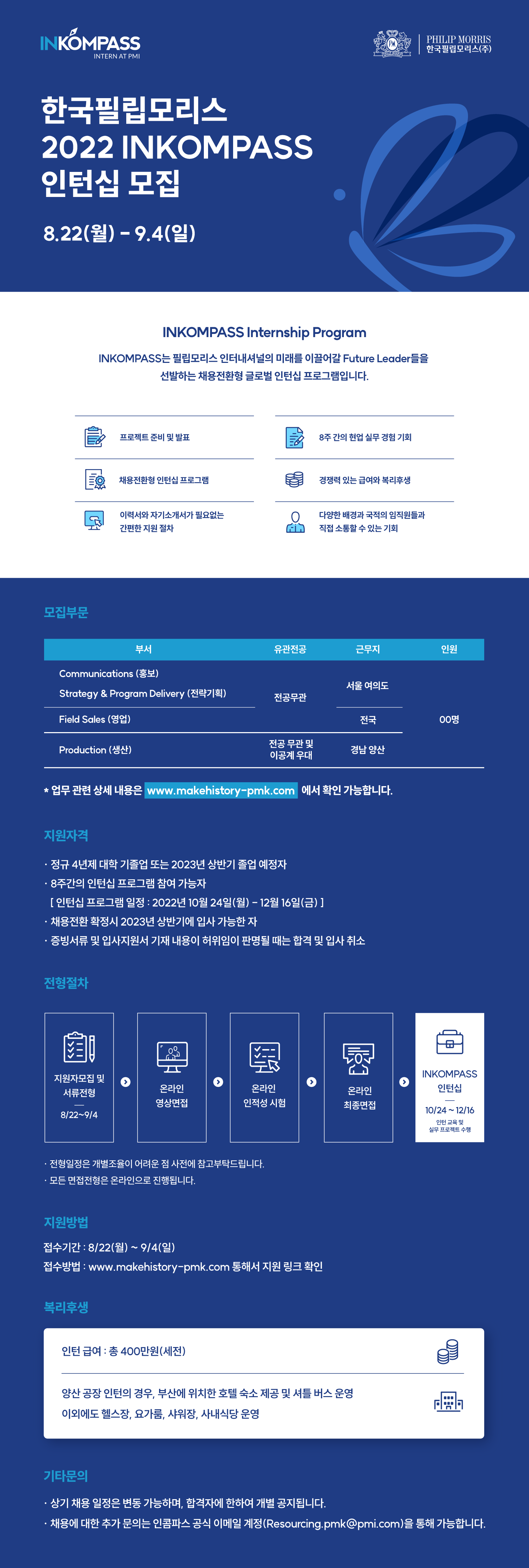 한국필립모리스 2022 INKOMPASS 인턴십 모집