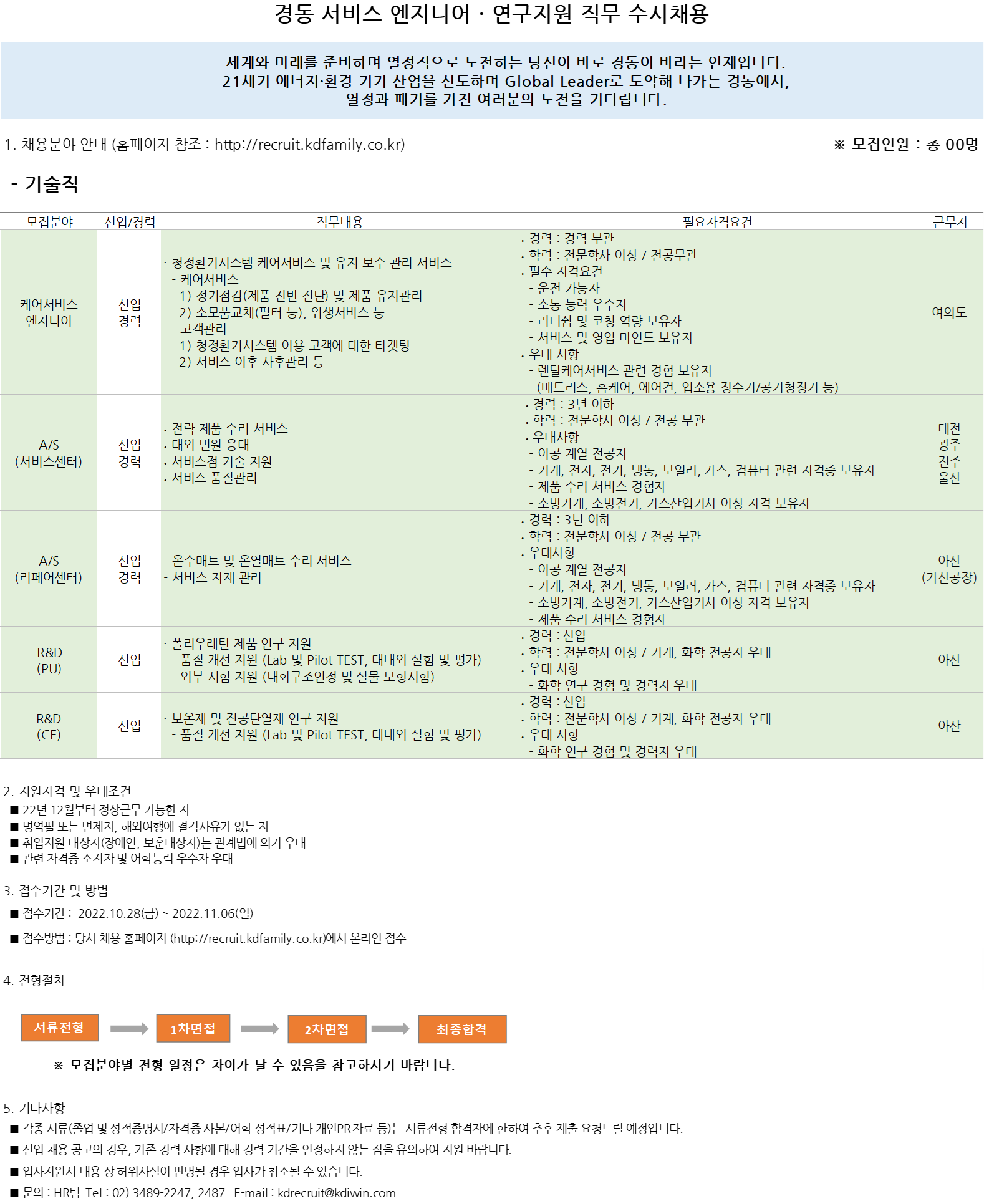 경동 서비스 엔지니어 · 연구지원 직무 수시채용