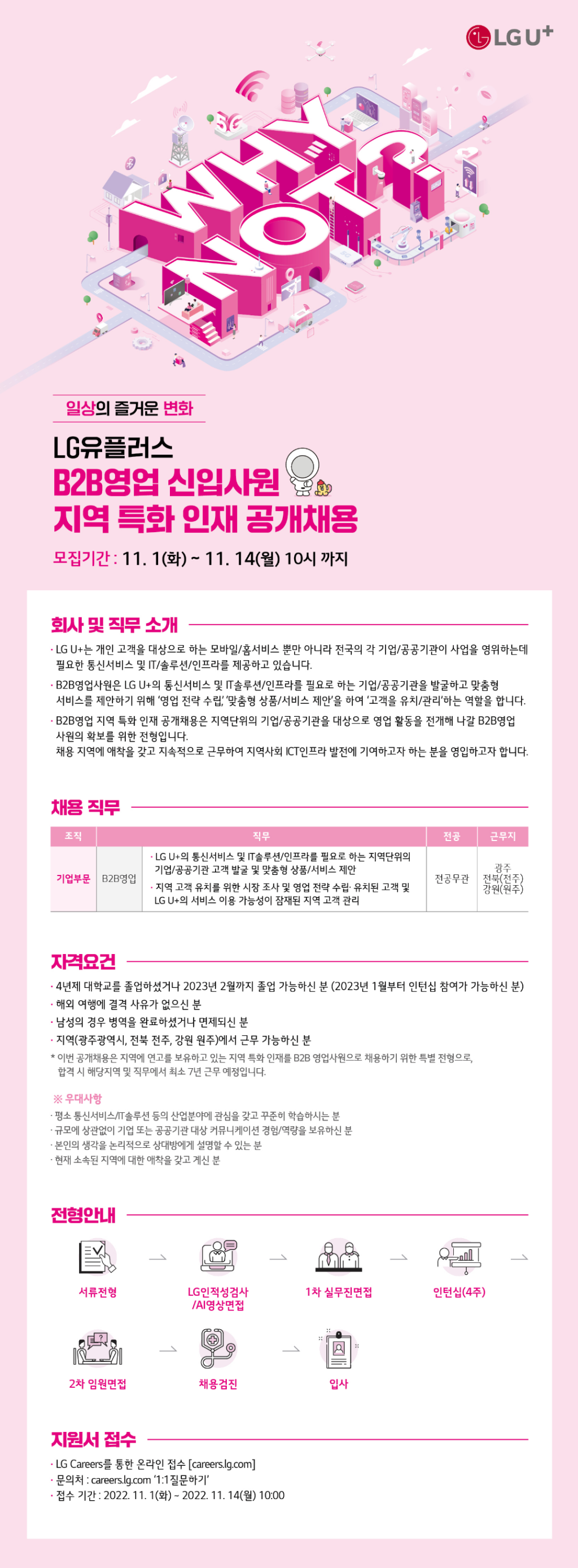 ※ 이번 공개채용은 지역에 연고를 보유하고 있는 지역 특화 인재를 B2B 영업사원으로 채용하기 위한 특별 전형으로,