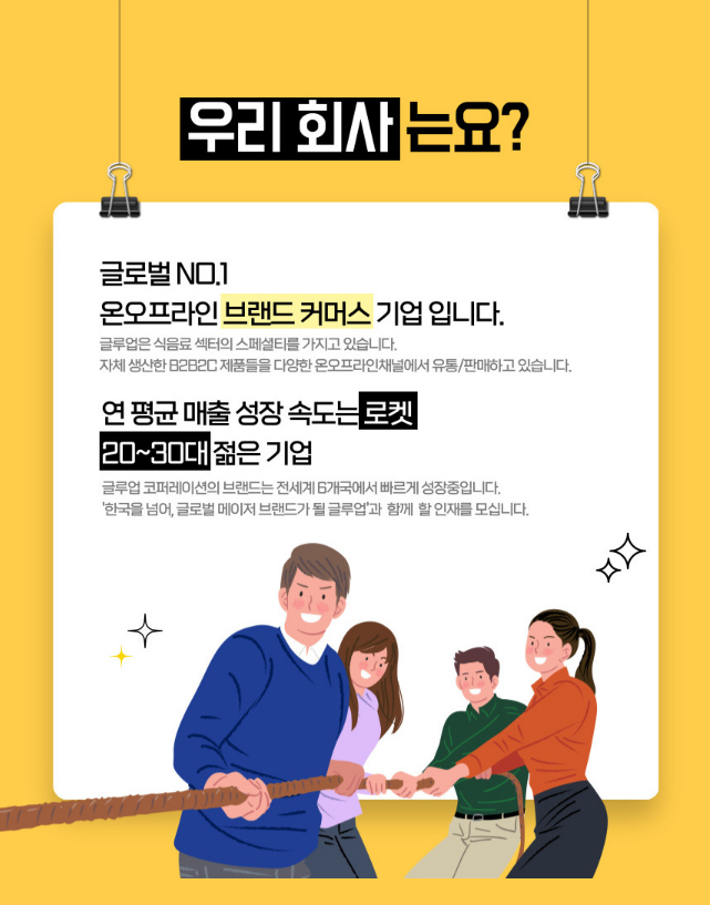 글루업은 브랜드 커머스 기업으로, 온라인에서는 진지, 메디로그, 미트탐 등 다양한 브랜드를 통해 다양한 식품을 판매하고 있으며, 오프라인에서는 숙달돼지, 만랩커피 프랜차이즈를 통해서 많은 사람들에게 맛의 즐거움을 알리고 있습니다. 최근까지 지속적으로 투자를 유치하였으며, 가장 최근 중기부를 통해 예비유니콘 회사로 선정된 바 있습니다