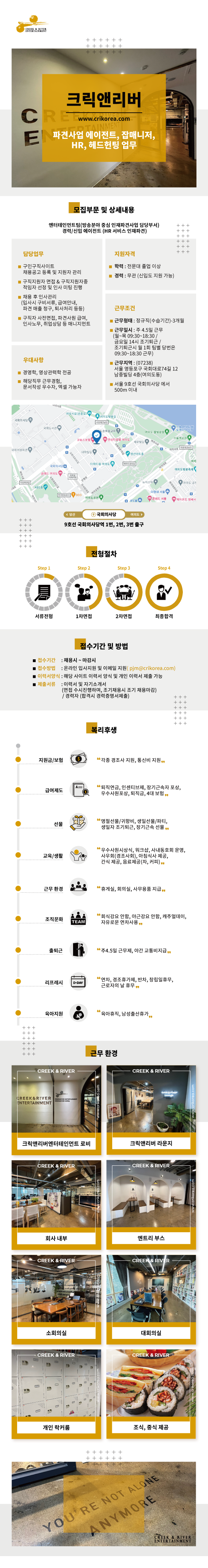 2001년 (주)크릭앤리버코리아로 설립되어, 방송영상분야/게임,IT분야/게임광고 분야의 Creator Agency 사업을 운영해왔습니다. 2016.12.01 기존 (주)크릭앤리버코리아는 한국 게임의 해외 중개 서비스를 중점으로 하고, 기타 사업은 (주)크릭앤리버엔터테인먼트로 분할 하였습니다.