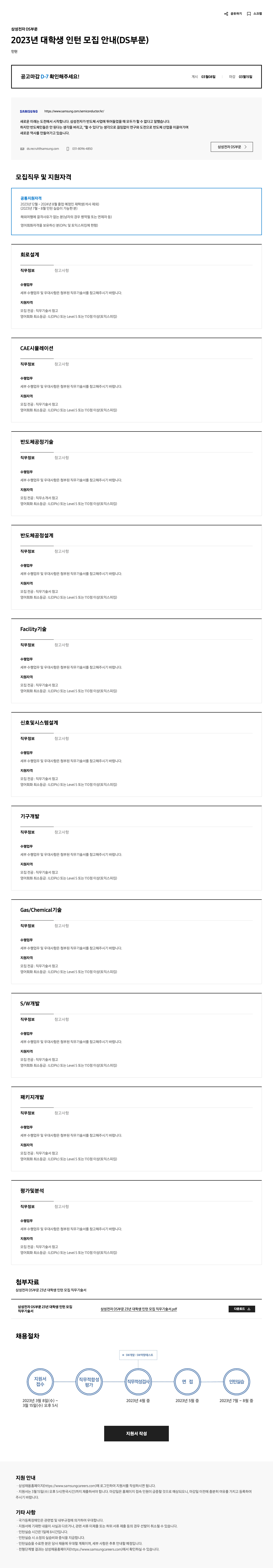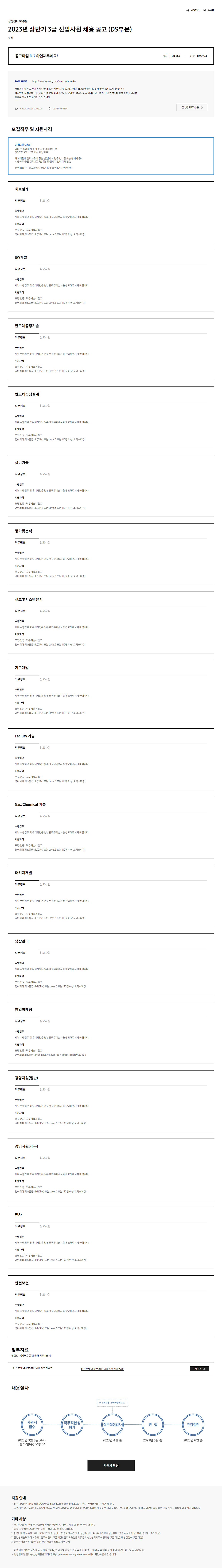 삼성전자 DS부문 2023년 상반기 3급 신입사원 및 대학생 인턴 모집