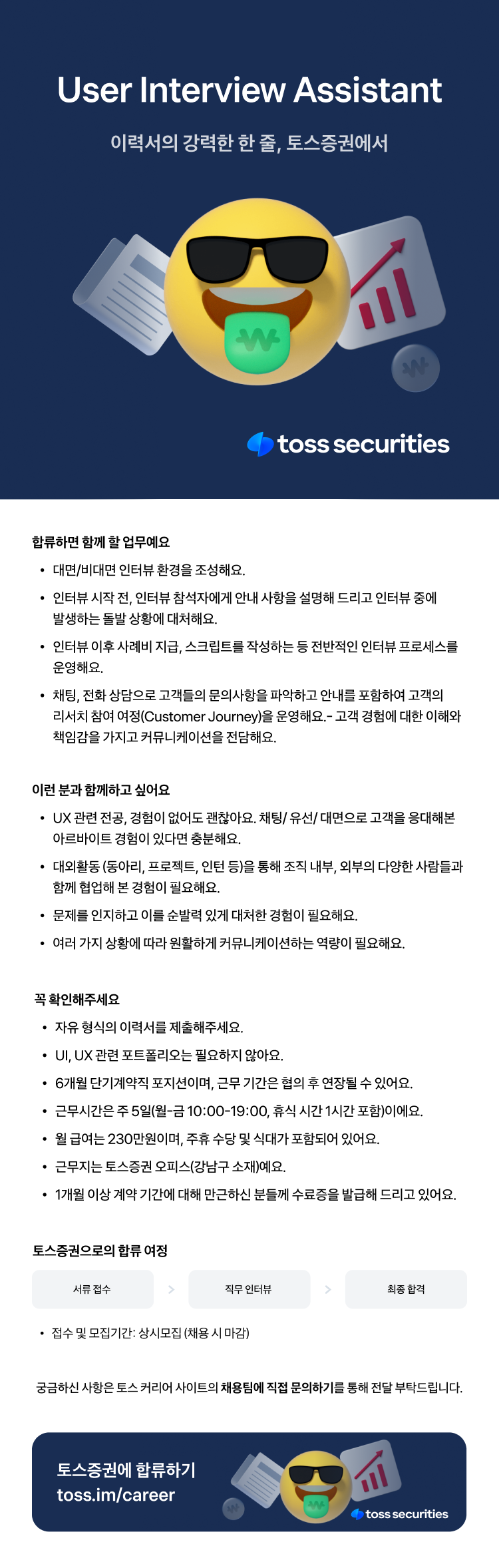 지나온 성장보다 더 큰 도약을 위해, 토스커뮤니티가 꿈꾸는 '간편하고 안전한 금융생활을 누리는 대한민국'을 함께 만들어갈 멋진 동료가 필요합니다.