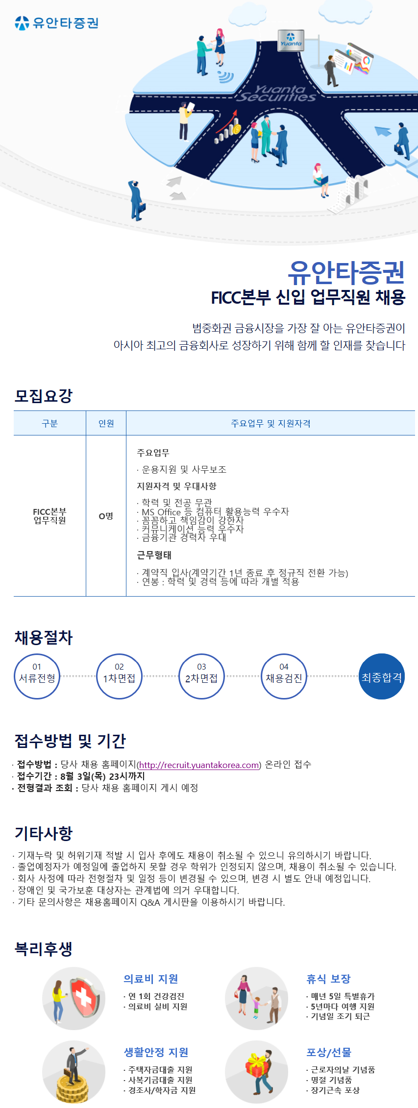 · 접수방법 : 당사 채용 홈페이지(http://recruit.yuantakorea.com) 온라인 접수