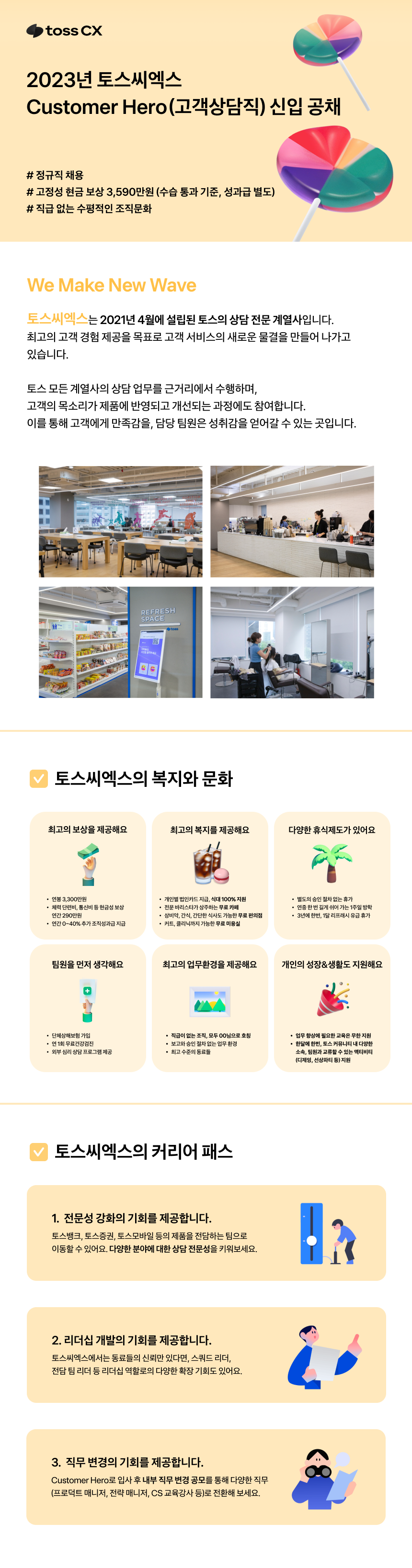 토스씨엑스는 2021년 4월에 설립된 토스의 상담 전문 계열사입니다.