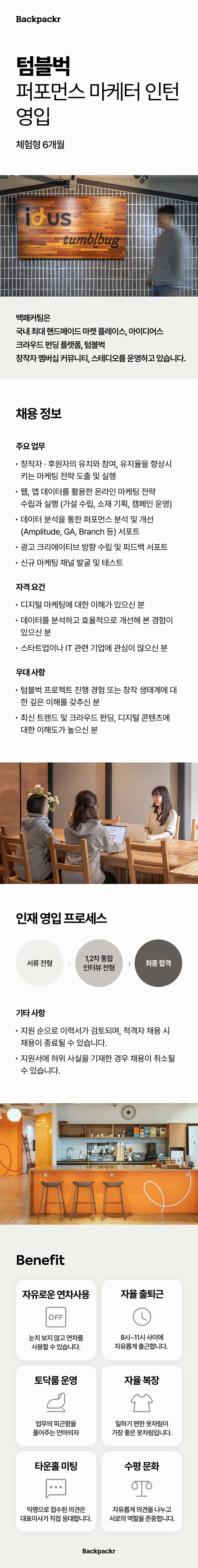 [텀블벅] 퍼포먼스 마케터 인턴 (체험형 6개월)