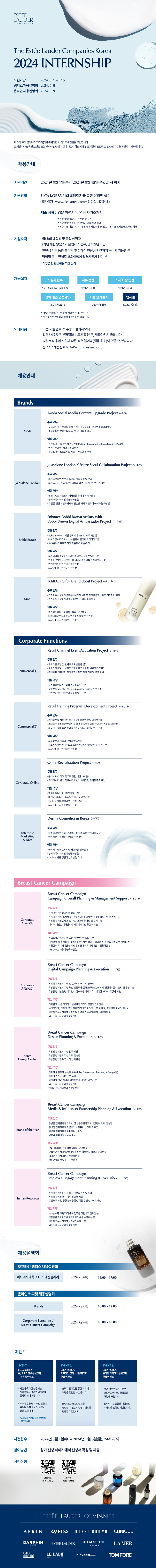 1991년 에스티 로더와 아라미스 브랜드로 시작하여 2016년 에어린과 르 라보, 2017년 킬리안 런칭까지 지속적으로 업계를 선도하며 혁신적인 브랜드들을 선보이고 있습니다. 현재 한국에서 만나볼 수 있는 브랜드는 에스티 로더, 크리니크, 아베다, 바비 브라운, 맥, 달팡, 라 메르, 조 말론 런던, 랩 시리즈, 톰 포드 뷰티, 에어린, 르 라보 등입니다.