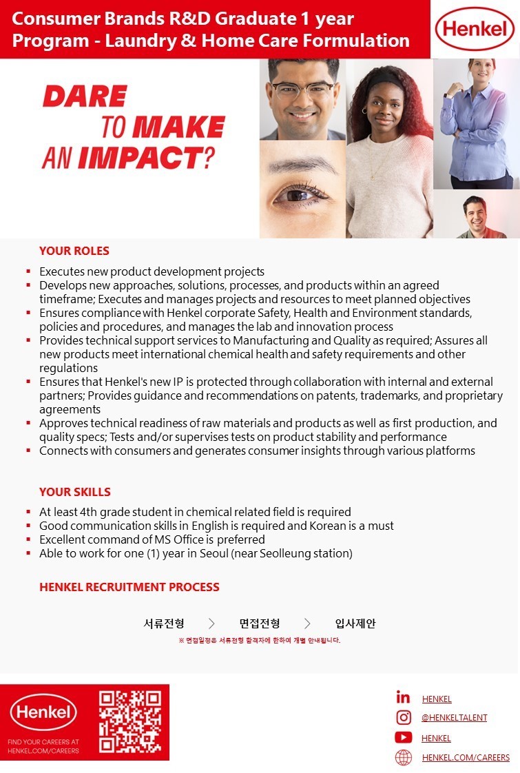 Consumer Brands R&D Graduate 1 year Program Laundry & Home Care Formulation