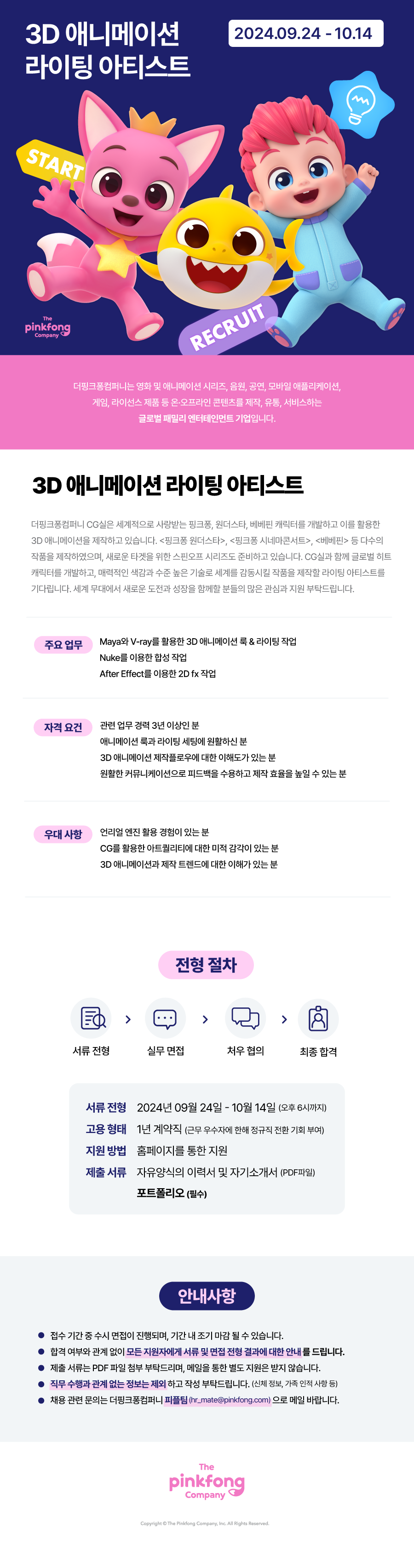 - 3D 애니메이션 제작플로우에 대한 이해도가 있는 분