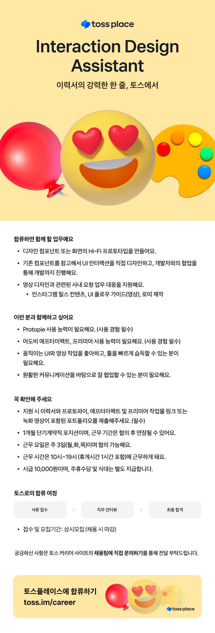 지나온 성장보다 더 큰 도약을 위해, 토스커뮤니티가 꿈꾸는 '간편하고 안전한 금융생활을 누리는 대한민국'을 함께 만들어갈 멋진 동료가 필요합니다.