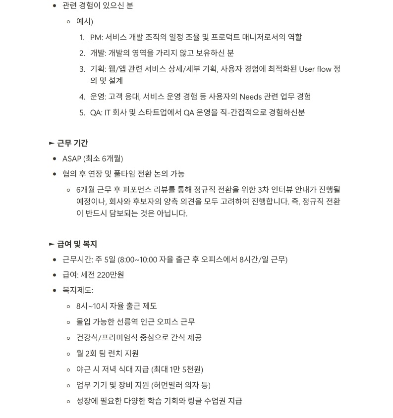 6개월 이상 근무 가능자