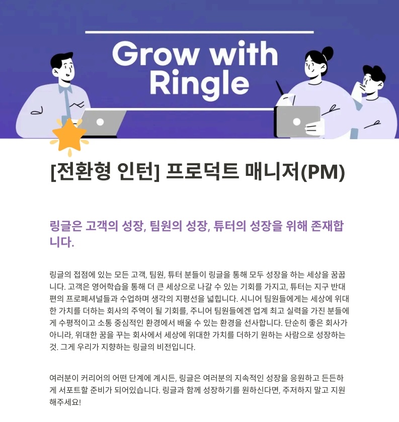 [전환형 인턴] 1:1 화상영어 링글 프로덕트 매니저(PM) 모집 PM