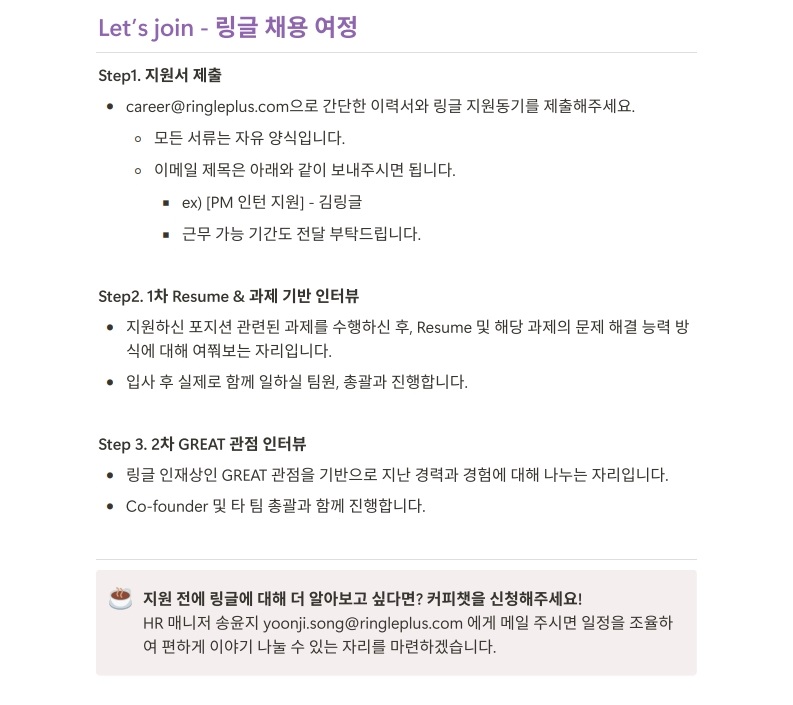 링글 채용 페이지에서 더 자세한 내용을 확인하실 수 있어요!