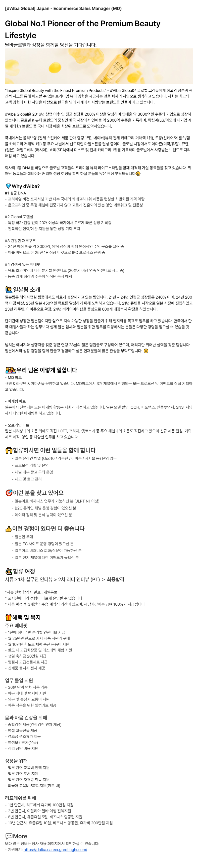 [d'Alba Global] Japan - Ecommerce Sales Manager (MD) 해외 영업