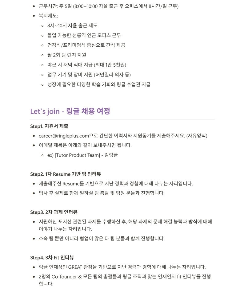 링글 채용 페이지에서 더 많은 정보를 확인하실 수 있어요!