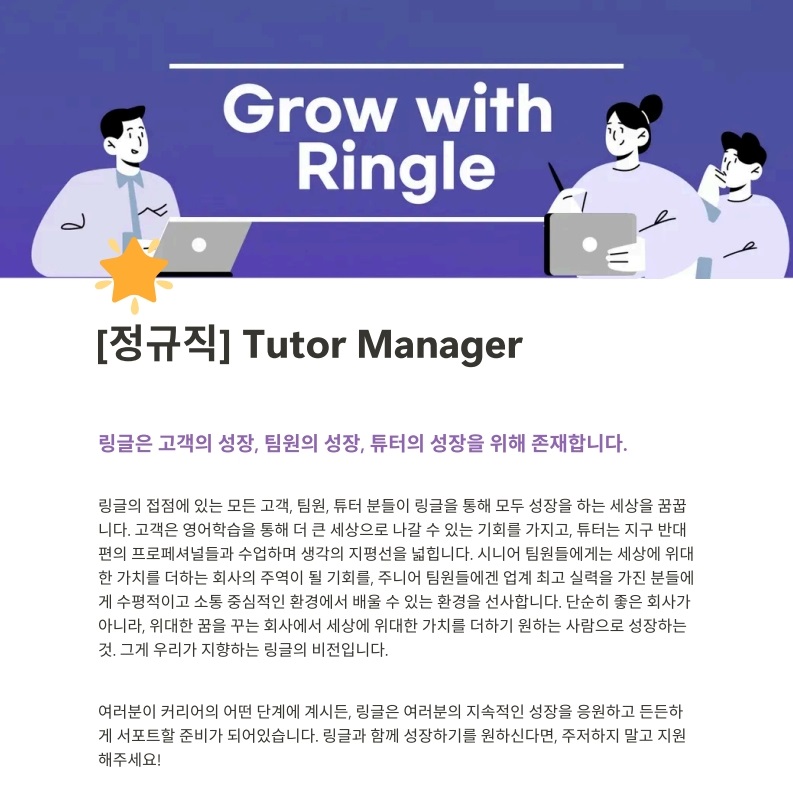 [신입] 1:1 화상영어 링글 튜터 선발/관리 매니저