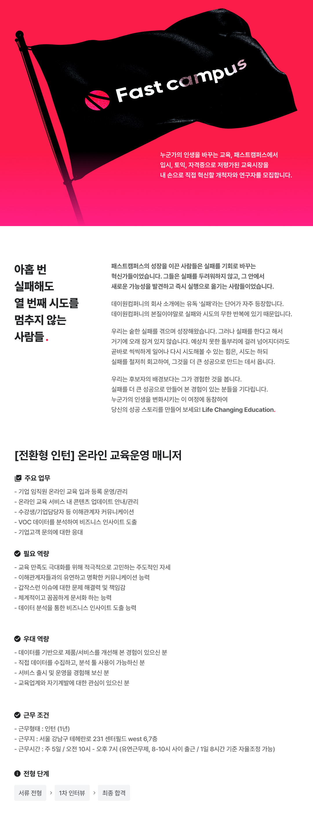 패스트캠퍼스 [전환형 인턴] 온라인 교육운영 매니저