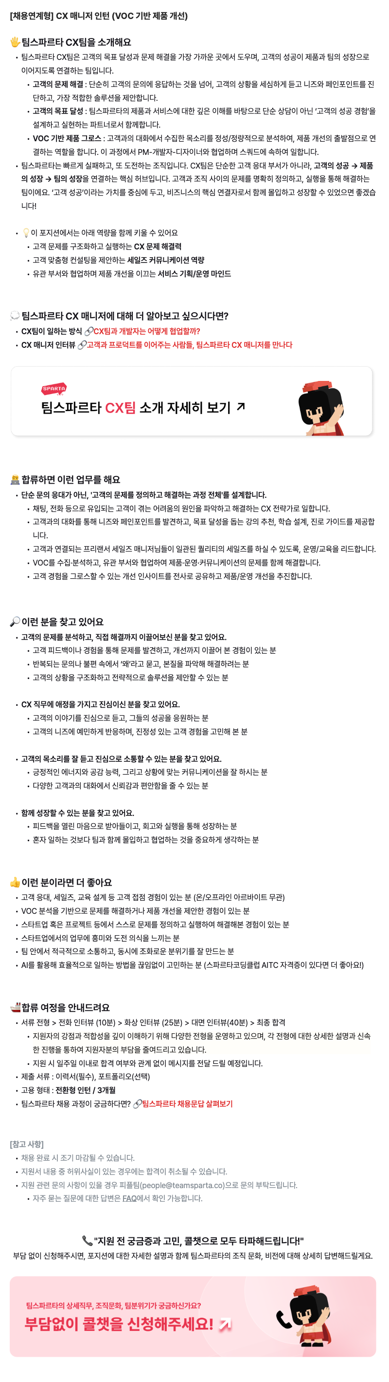 CX팀 [채용연계형] CX 매니저 인턴 (VOC 기반 제품 개선)