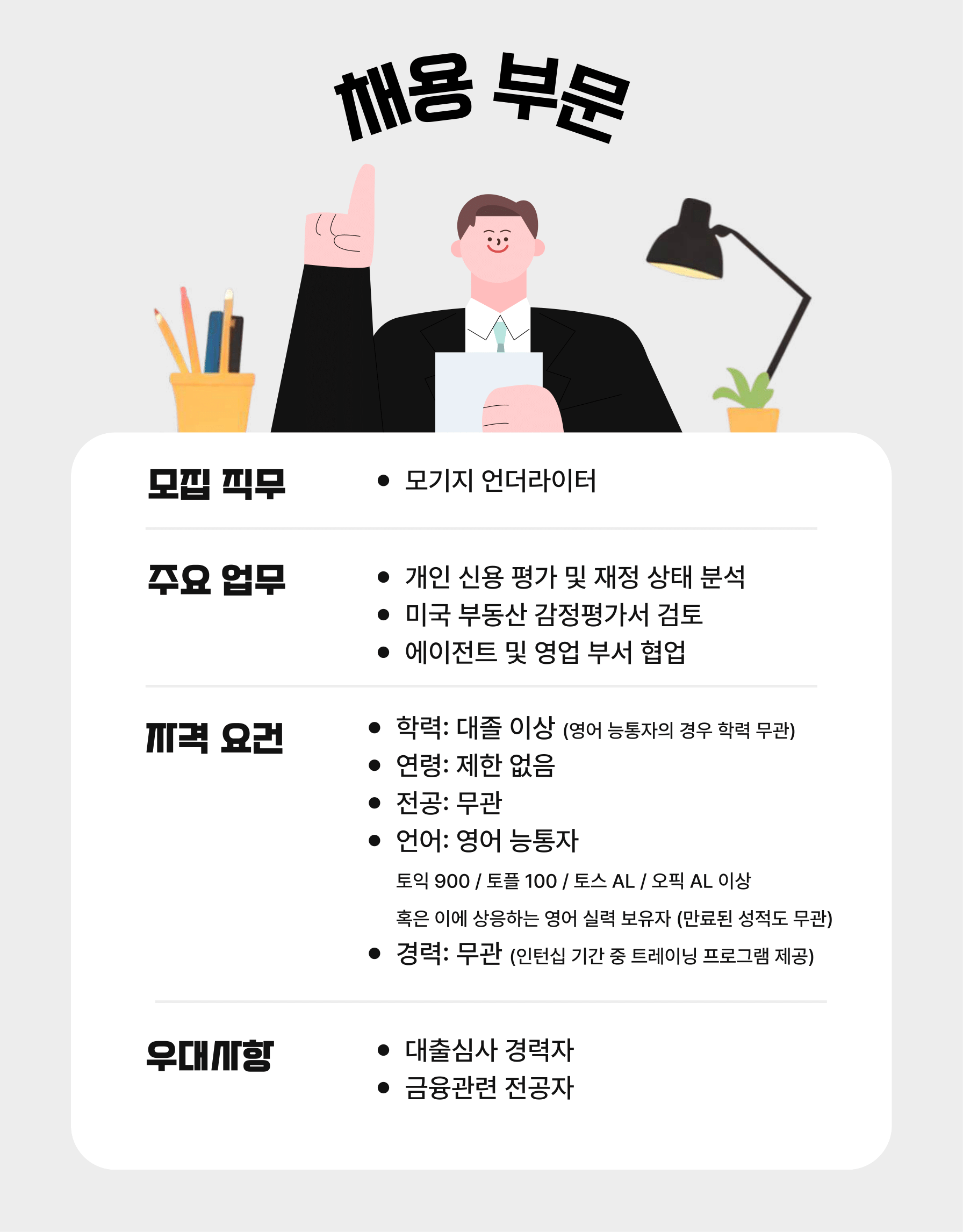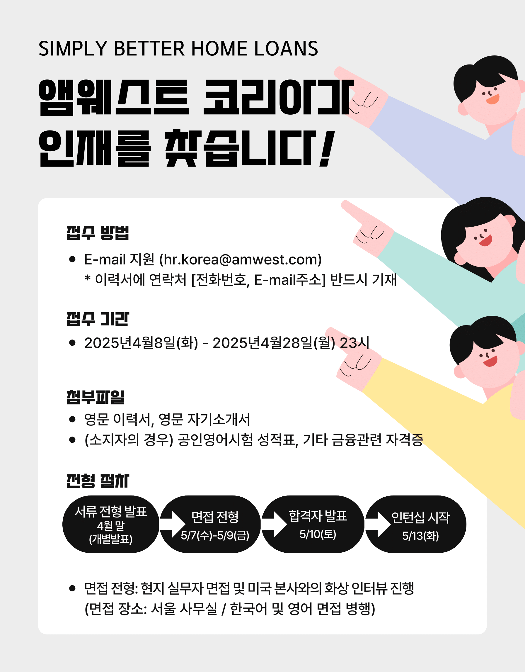 AmWest Korea 채용연계형 모기지 언더라이터 인턴 모집