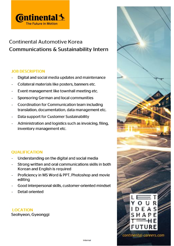 - Application Form(Intern)을 Email 제출(jihyun.hwang@continental-corporation.com)