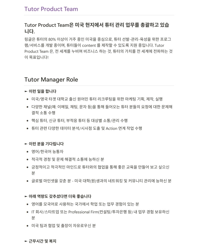 링글 채용 페이지에서 더 많은 정보를 확인하실 수 있어요!