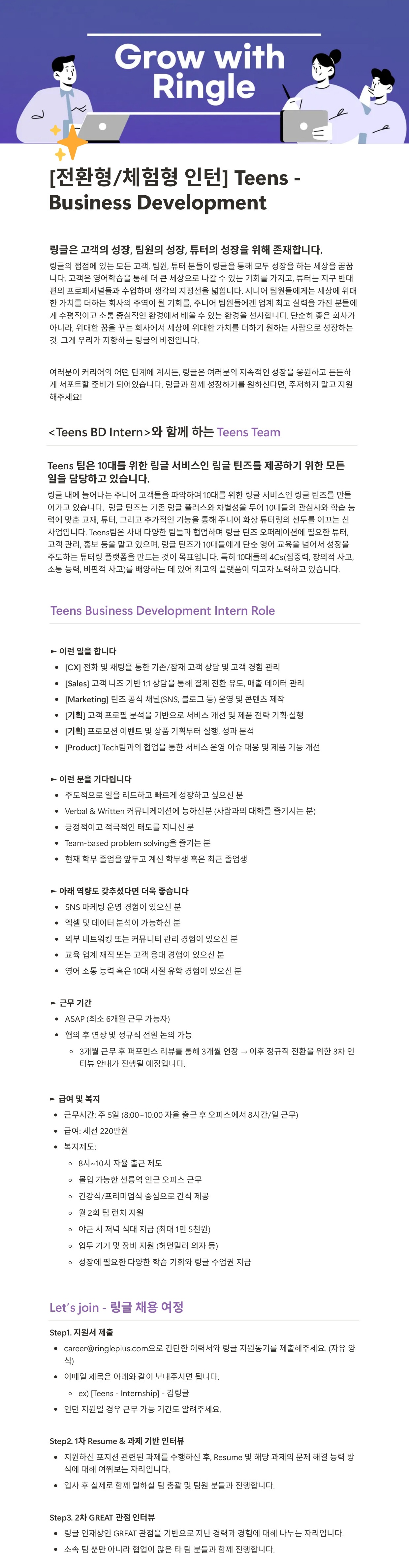 [화상영어 링글 틴즈] Business Development 사업개발 전환형 인턴