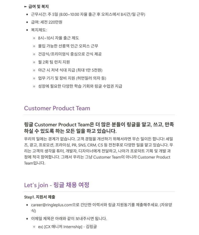 링글 채용 페이지에서 더 자세한 내용을 확인하실 수 있어요!