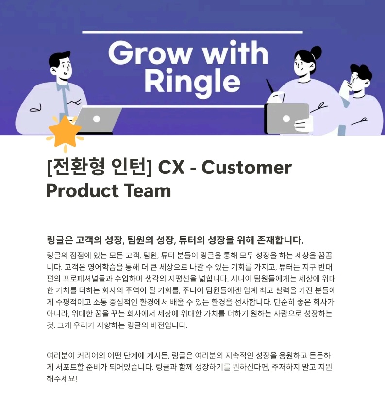 [화상영어 링글] CX (고객경험개선) 전환형 인턴