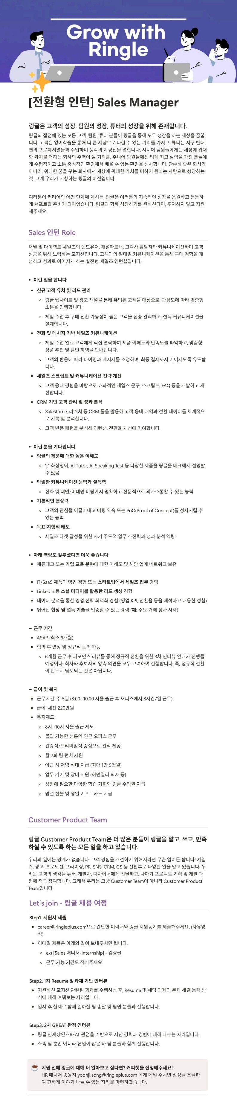 [화상영어 링글] B2C Sales Manager 전환형 인턴