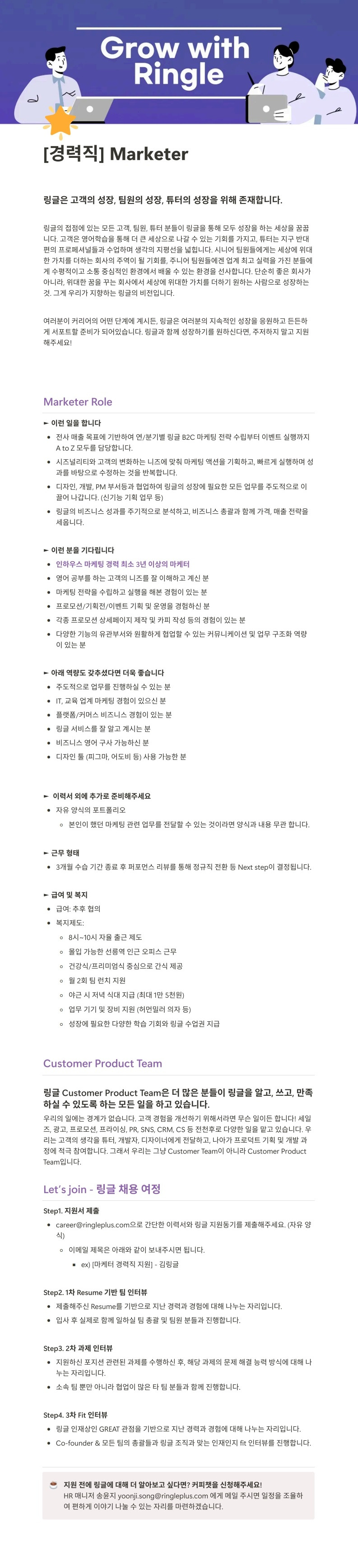[화상영어 링글] B2C 마케팅 마케터 (3년 이상)