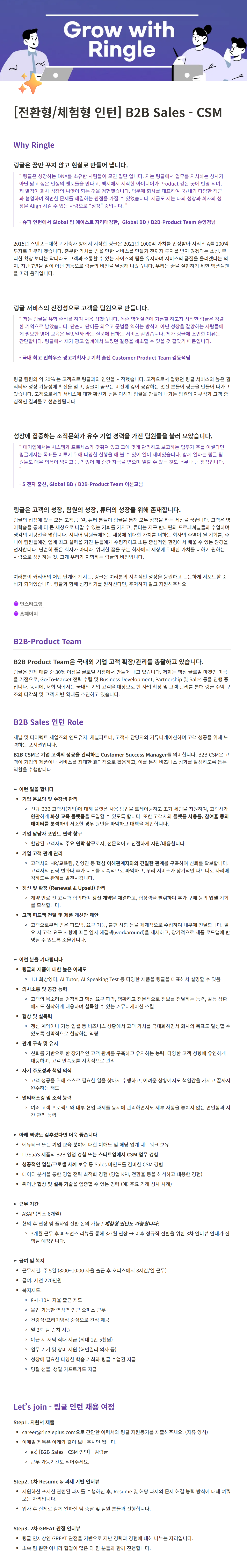 [화상영어 링글] B2B Sales - CSM 전환형/체험형 인턴